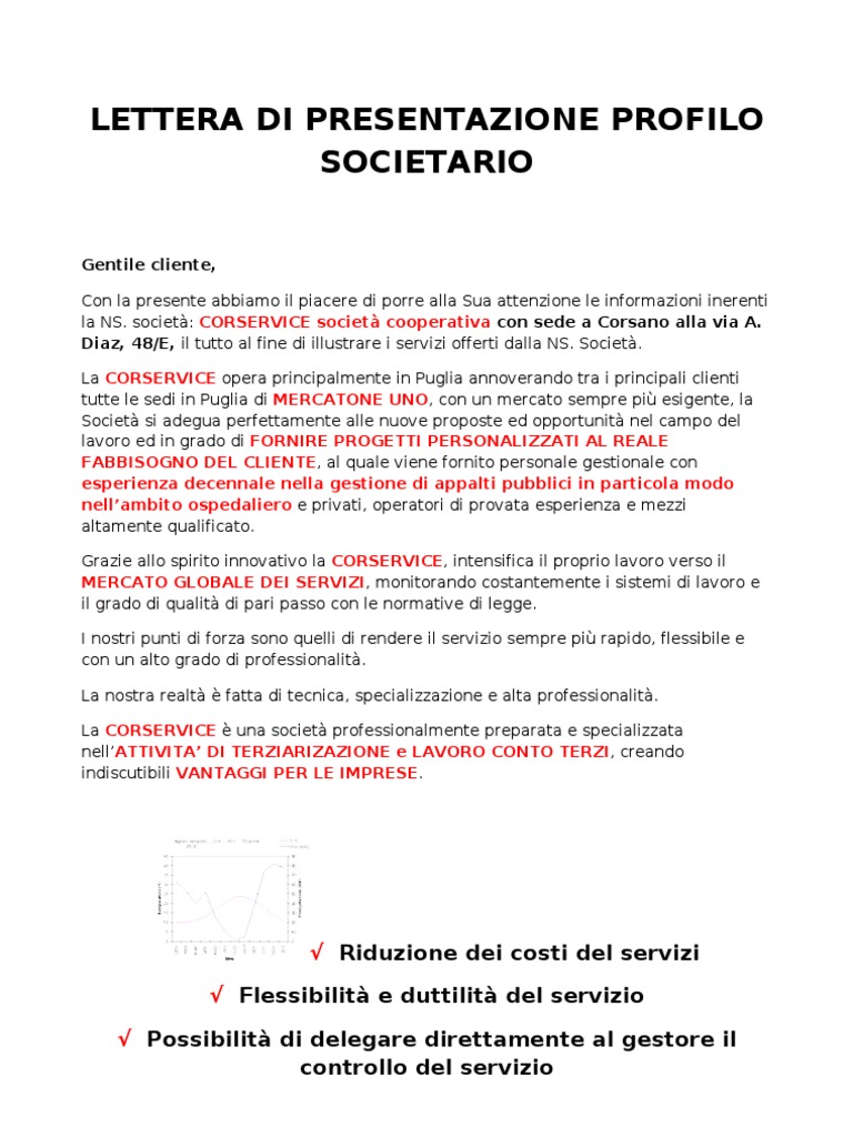 Lettera di presentazione breve. Come scrivere una lettera di presentazione efficace (+esempi) Definizione: una lettera di presentazione è un documento stilato da un candidato per raccontare di sé. Viene solitamente allegata al curriculum vitae e permette di descrivere le proprie esperienze e competenze professionali in maniera più discorsiva rispetto al CV. Blablabla, bla bla bla, blabla, blaaaa e ancora bla. Distinti saluti. Lettera di presentazione aziendale: esempi da inviare via Mail Lo scopo di una lettera di presentazione aziendale è, di base, l'acquisizione di nuovi clienti.Ma per farlo, è necessario riuscire a immedesimarsi il più possibile nell'eventuale utente medio che avrà modo di interagire con la tua comunicazione.. Servono quindi piccoli accorgimenti per rendere efficace la comunicazione scritta, meno diretta e più "formale" rispetto ad un approccio ... Lettera di presentazione efficace: ecco come scriverla ... Quando invii una lettera di presentazione in risposta a un'offerta di lavoro ti focalizzi sulle tue competenze. In particolare, se hai la necessità di inviareuna candidatura spontanea sarà necessario cercare di impressionare e catturare l'attenzione di chi la legge, descrivendo brevemente il tuo profilo: Chapter 8: Capitolo 7 - Breve post scriptum sulla lettera ... Capitolo 7: Breve post scriptum sulla lettera di presentazione . In genere, quando ci si candida spontaneamente per una posizione lavorativa (cioè per un posto le cui selezioni non sono aperte o per cui non c'è una specifica pubblicità o un format da compilare), capita di dover accompagnare il cv con due righe che motivino il perché lo si sta inviando.